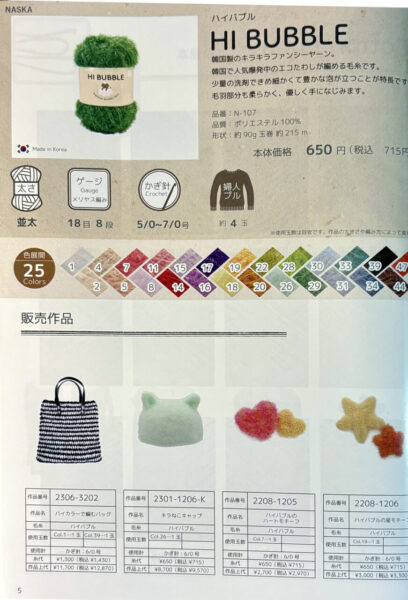 ポリエステル 100%玉巻 90g糸長 215mかぎ針 5/0~7/0号税込価格 715円 /玉