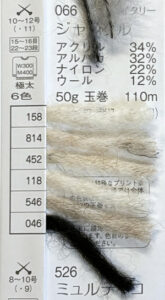 ウール 82%ナイロン 18%玉巻 40g糸長 約155m棒針 4~6号税込価格 1,045円