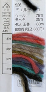 ウール 75%モヘア 25%玉巻 40g糸長 約80m棒針 8~10号税込価格 880円