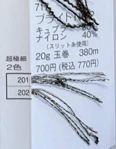 キュプラ 60%ナイロン 40%玉巻 20g糸長 約380m棒針 超極細税込価格 770円