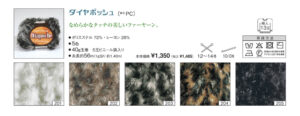 ウール 50%モヘヤ 21%ナイロン 29%玉巻 40g糸長 約112m棒針 6~7号かぎ針 5/0~6/0号税込価格 1,078円