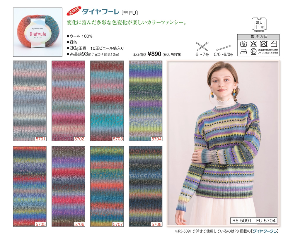 ダイヤフーレ 新製品 2025年10月2日 最終更新日時 : 2025年10月4日 admin ウール 100%玉巻 30g糸長 約93m棒針 6~7号かぎ針 5/0~6/0号税込価格 979円 FacebookXCopy