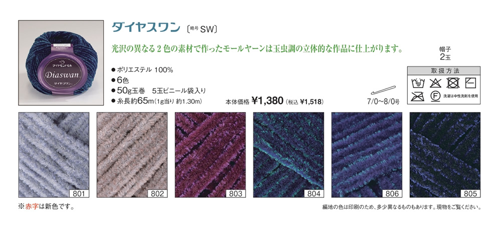 ダイヤスワン 2025年10月2日 最終更新日時 : 2025年10月4日 admin ポリエステル 100%玉巻 50g糸長 約65m鍵針 7/0~8/0号本体価格 1,518円1袋5玉入り FacebookXCopy