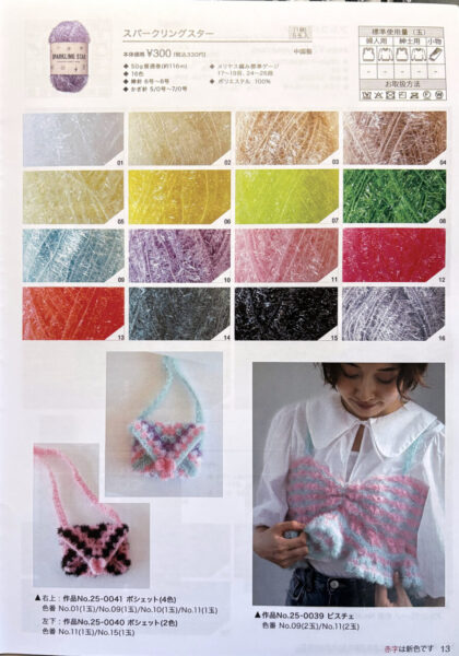 スパークリングスター 2025年10月2日 最終更新日時 : 2025年10月4日 admin ポリエステル 100%玉巻 50g糸長 約116m棒針 6~8号かぎ針 5/0~7/0号税込価格 330円 FacebookXCopy