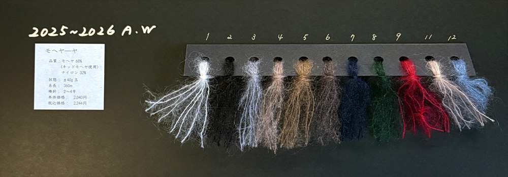 モヘヤーヤ 2025年10月2日 最終更新日時 : 2025年10月4日 admin モヘヤ 68%ナイロン 32%玉巻 40g糸長 約360m棒針 2~4号税込価格 2,244円 FacebookXCopy