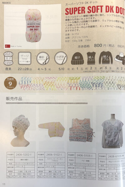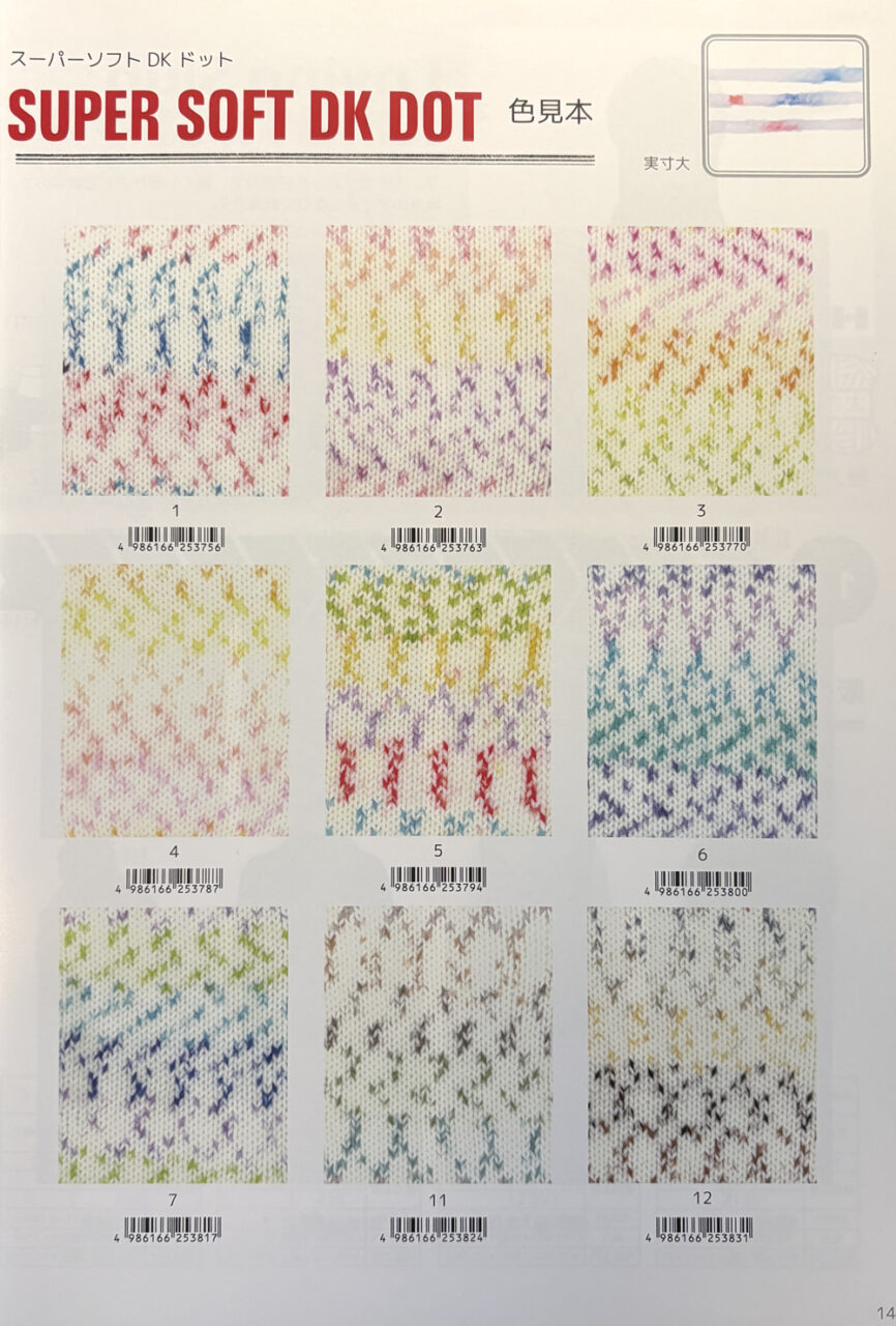 SUPER SOFT DK DOT(スーパーソフトDKドット) 2025年10月2日 最終更新日時 : 2025年10月4日 admin アクリル 100%玉巻 100g糸長 約298m棒針 4~5号かぎ針 5/0号税込価格 880円 /玉1袋5玉入り FacebookXCopy
